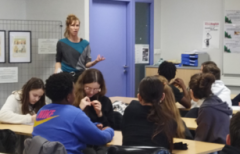 Les quatre classes de 3e ont rencontré Marion Le Muzic, scénariste de la bande-dessinée Basta, guide d’autodéfense féministe pour ados (et pas que…). Les élèves ont appris à identifier les différents types d’agressions sexistes et /ou sexuelles dans l’espace public mais aussi dans le cadre des relations amoureuses. Ils ont travaillé sur les différentes manières de demander de l’aide lorsque l’on est victime d’une agression et ont réfléchi aux manières d’intervenir lorsque l’on est témoin d’une agression ou si un.e ami.e en est victime.