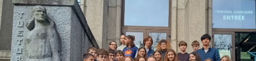 Le 3 novembre 2025, les élèves de 3e C ont assisté à une audience du tribunal correctionnel de Brest accompagnés de Mme Cuzon, M. Guillou et Mme Pages.